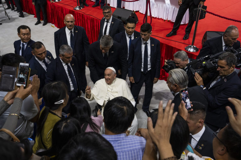 Odchod pápeža Františka z omše v Ulánbátare, ktorú celebroval. Foto: SITA/AP.