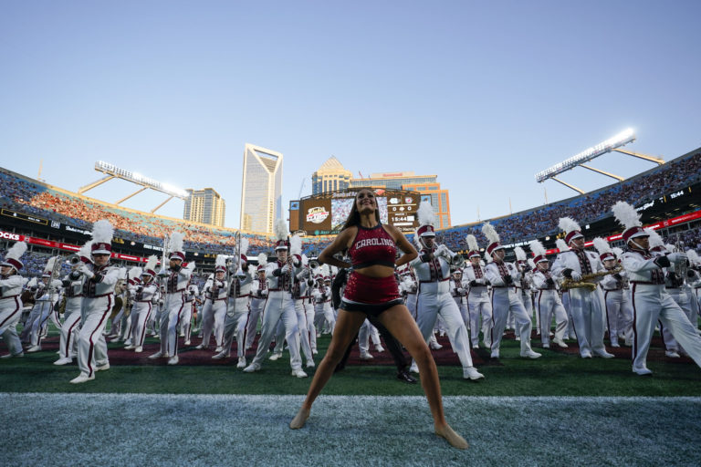 Kapela a roztlieskavačky pred zápasom NCAA medzi Južnou a Severnou Karolínou. Foto: SITA/AP.
