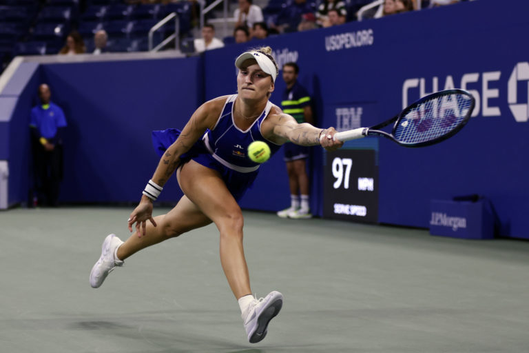 Česká teniska Markéta Vondroušová počas zápasu 3. kola US Open, v ktorom zdolala Rusku Jekaterinu Alexandrovovú 6:2, 6:1. Foto: SITA/AP.