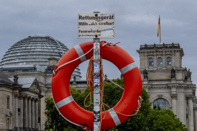 Záchranné koleso na moste cez rieku Spréva v Berlíne. Foto: SITA/AP