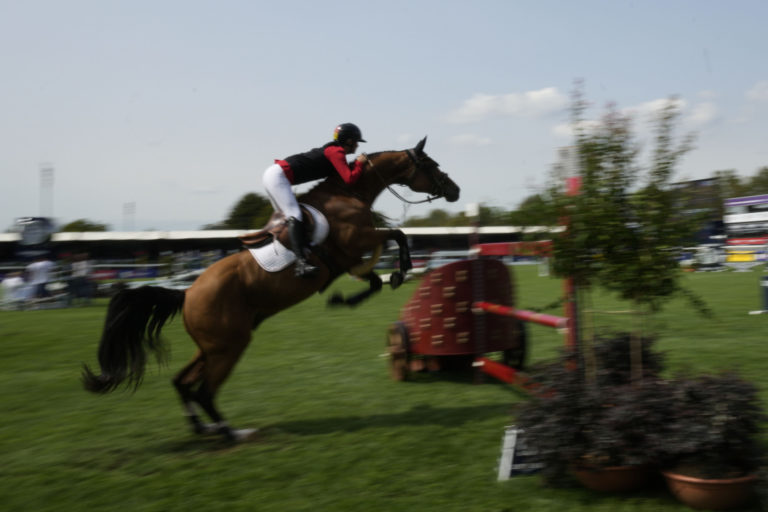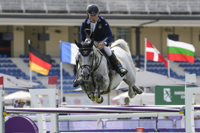 Švajčiar Martin Fucks na koni menom Leone Jei počas kvalifikácie majstrovstiev Európy v jazdectve v talianskom Miláne. Foto: SITA/AP