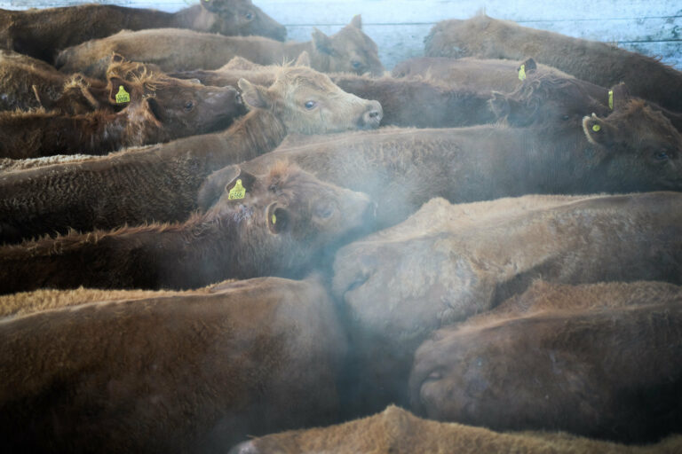 Dobytok v ohradách počas aukcie v združení rančerov v Brandsene. Argentína, 20. októbra 2025. Foto: AP Photo/Rodrigo Abd
