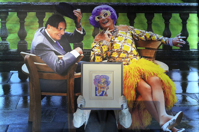 Obchodník s umením vystavuje kresbu pred predajom diela Barry Humphries: Osobná zbierka, v aukčných sieňach Christie's v Londýne. Anglicko, 7. februára 2025. Foto: AP Photo/Kirsty Wigglesworth
