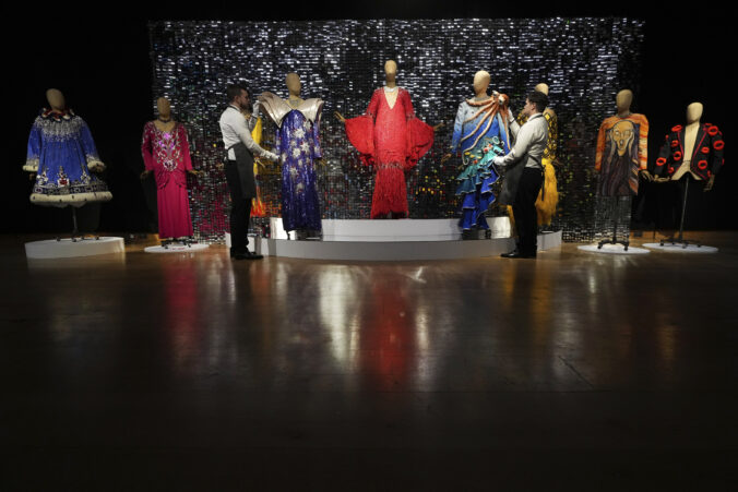 Umelci pripravujú kostýmy pred predajom zbierky Barry Humphries: Osobná zbierka, v aukčných sieňach Christie's v Londýne. Anglicko, 7. februára 2025. Foto: AP Photo/Kirsty Wigglesworth