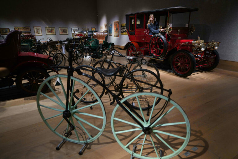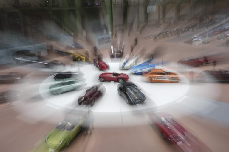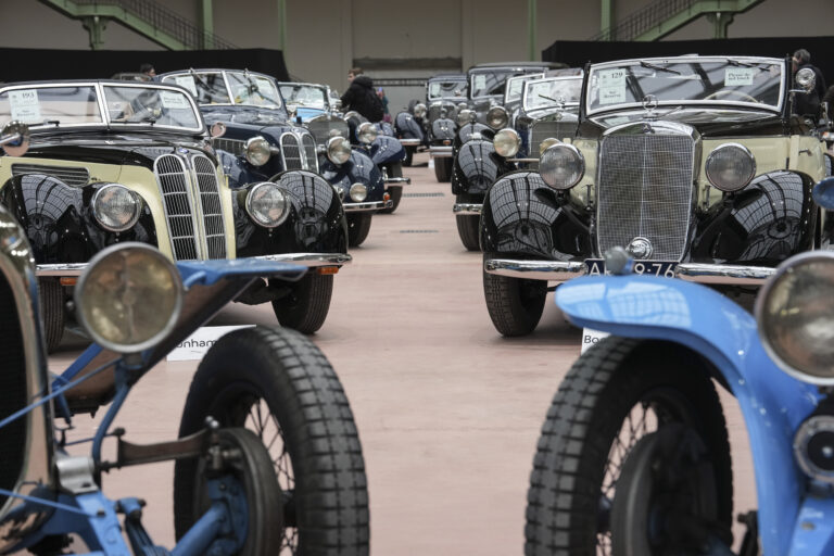 Oldsmobily, ktoré draží Bonhams Cars, vystavené v parížskom Grand Palais. Francúzsko, 4. februára 2025. Foto: AP Photo/Aurelien Morissard