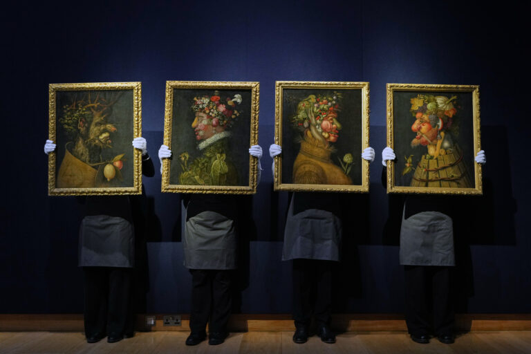 Zamestnanci držia dielňu Giuseppe Arcimbolda (Miláno 1527-1593) Štyri ročné obdobia v aukčnej sieni Christie's v Londýne. Aglicko, 27. novembra 2025. Foto: AP Photo/Kirsty Wigglesworth