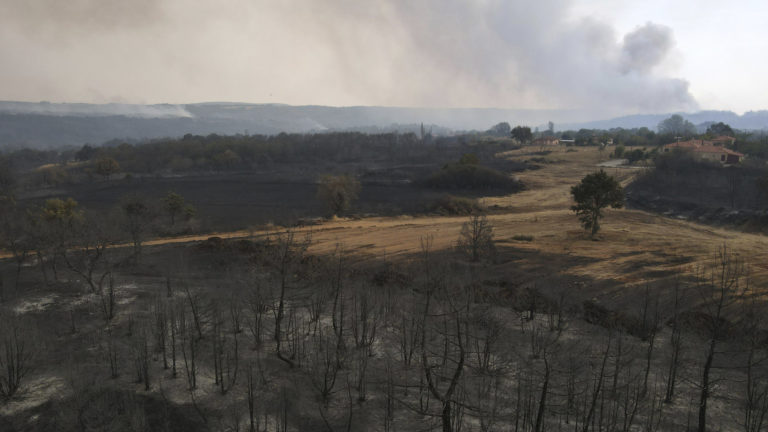 Lesný požiar v regióne Evros v Grécku. Foto: e-evros.gr via AP.