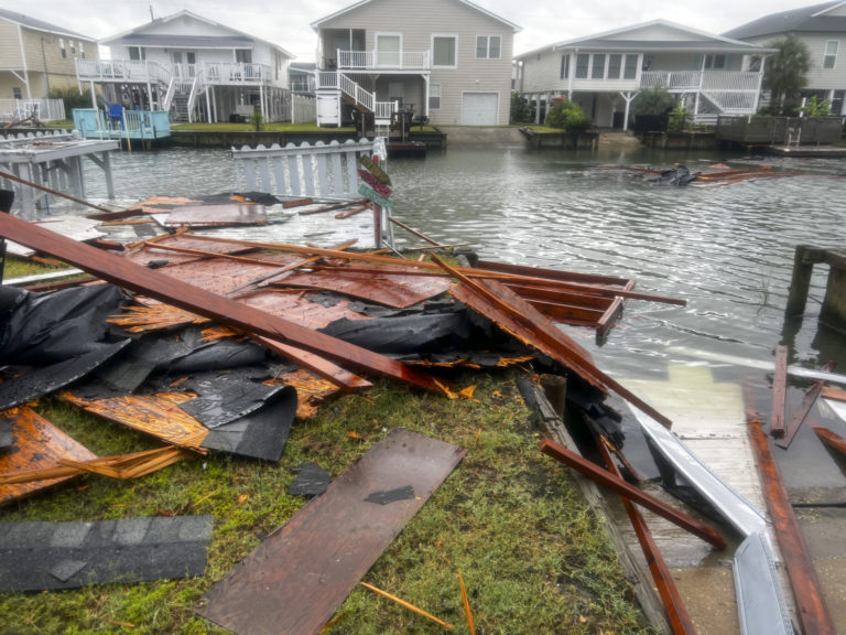 Škody po tropickej búrke v North Myrtle Beach v Južnej Karolíne. Foto: Jason Lee/The Sun News via AP.