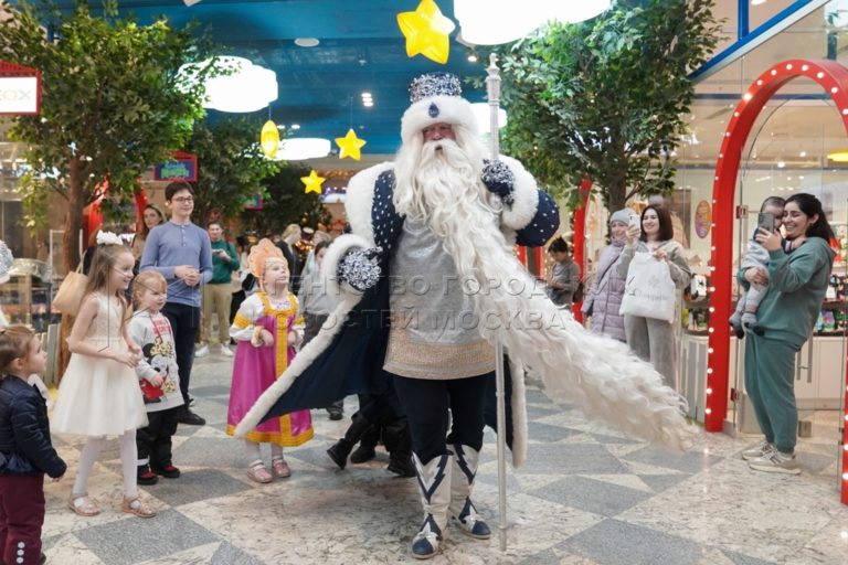Dedomráz v jednom z nákupných centier v Moskve. Foto: Pelagia Tikhonova/Moscow News Agency via AP.