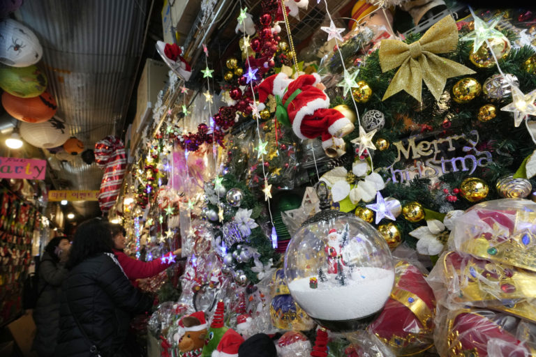 Vianočné dekorácie v Soule. Foto: SITA/AP.
