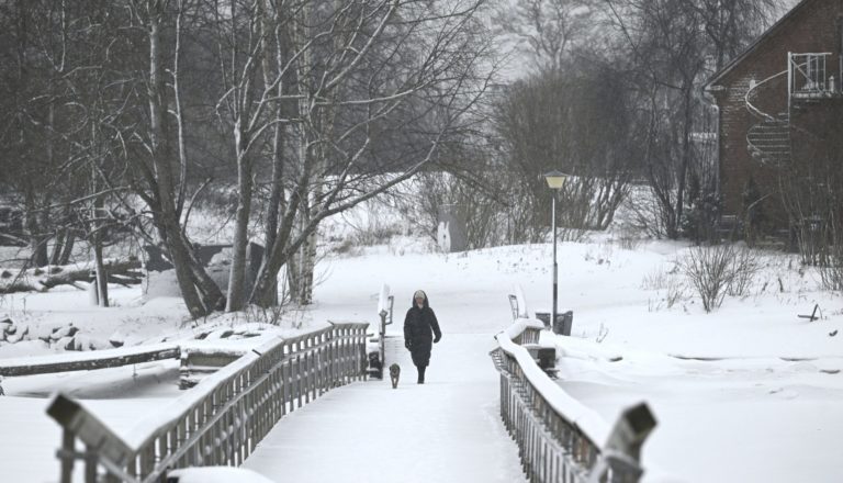 Žena venčí psa vo fínskych Helsinkách. Teploty v severskom regióne už druhý deň po sebe klesli pod mínus 40 stupňov Celzia. Foto: SITA/Heikki Saukkomaa/Lehtikuva via AP)