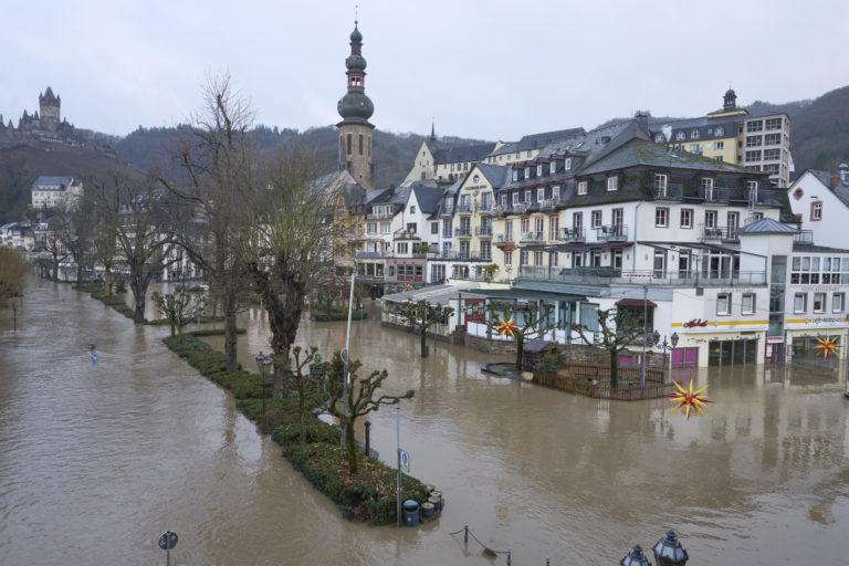 Zaplavené ulice v nemeckom Cocheme. Foto: SITA/Thomas Frey/dpa via AP)