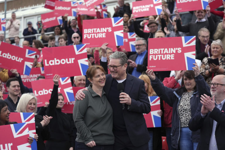 Líder britskej Labouristickej strany Sir Keir Starmer s novozvolenou starostkou East Midlands Claire Wardovou. Foto: Jacob King/PA via AP
