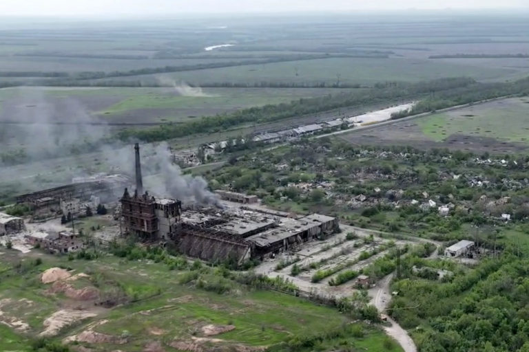 Dedina Očeretyne, ktorá je cieľom ruských síl v Doneckej oblasti na východe Ukrajiny. Foto: Kherson/Green via AP