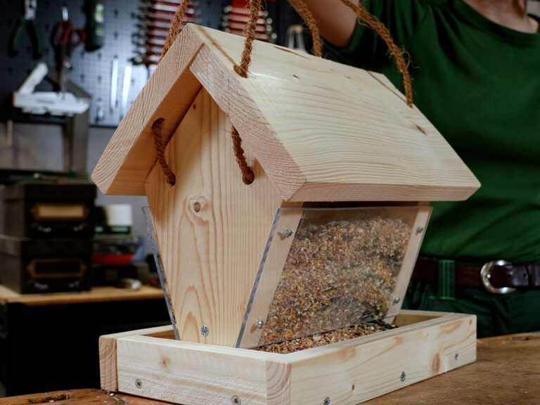 Výroba kŕmidla pre vtáky od PARKSIDE zo smrekového dreva, akrylového skla a niekoľkých skrutiek, ktoré je odolné voči poveternostným vplyvom. Otvorená konštrukcia zaisťuje, že krmivo zostáva suché a je prístupné z viacerých strán na prilákanie rôznych druhov vtákov. Priehľadné strany umožňujú mať neustály prehľad o množstve potravy a okamžite vidieť, kedy je potrebné ju doplniť. Bratislava, 4. november 2025. Foto: SITA/PARKSIDE