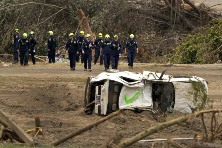 Pátracia a záchranná jednotka prehľadáva oblasť v americkom štáte Tennessee, ktorou sa prehnal hurikán Helene. Erwin, 4. október 2024. Foto: SITA/AP