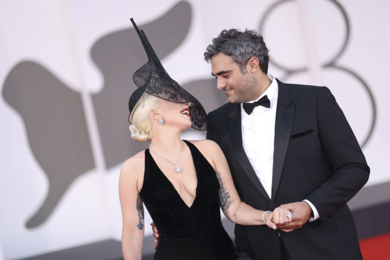 Lady Gaga (vľavo) a Michael Polansky pózujú fotografom pri príchode na premiéru filmu Joker: Folie A Deux počas 81. ročníka filmového festivalu v Benátkach. 4. september 2024. Foto: Vianney Le Caer/Invision/AP
