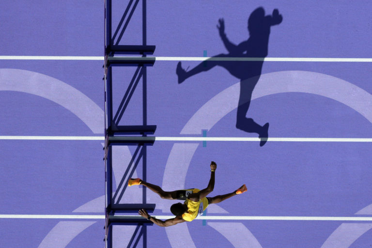 Jaheel Hyde z Jamajky počas behu na 400 metrov cez prekážky na Letných olympijských hrách 2024. Saint-Denis, 5. august 2024. Foto: SITA/AP