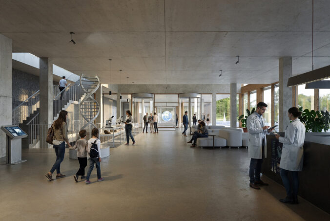 Vizualizácia víťazného návrhu budúceho Zážitkového centra vedy a planetária v bratislavskej ZOO. Medzinárodná porota vybrala z 27 súťažných návrhov model od architekta Štefana Starinského. Bratislava, 5. december 2025. Autor vizualizácií: Ing. arch. Lukáš Blana