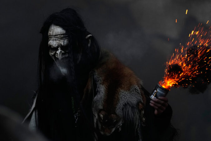 Účastník v tradičnom kostýme Krampus počas behu Krampusov v Itteri. Rakúsko, 5. decembra 2025. Foto: AP Photo/Matthias Schrader