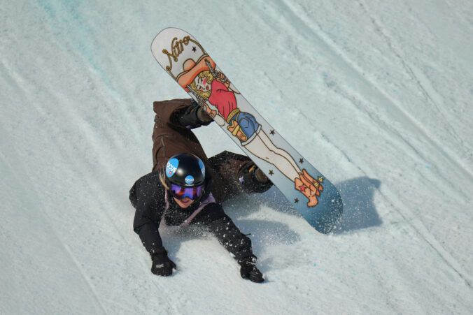 Ariane Burri zo Švajčiarska havarovala počas kvalifikácie na big air v ženskom snowboarde počas Svetového pohára FIS v snowboarde a freeski 2025 v parku Shougang v Pekingu. Čína, 5. decembra 2025. Foto: AP Photo/Andy Wong