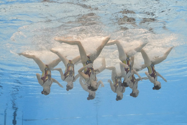 Slovenské akvabely počas Majstrovstiev sveta vo vodnom športe v katarskej Dauhe. Foto: SITA/AP.