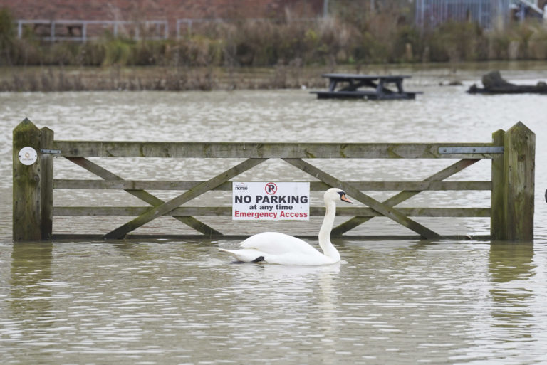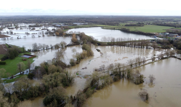 Stúpajúca hladina rieky Nene spôsobila záplavy vo Wellingborough v Anglicku. Foto: Stefan Rousseau/PA via AP.