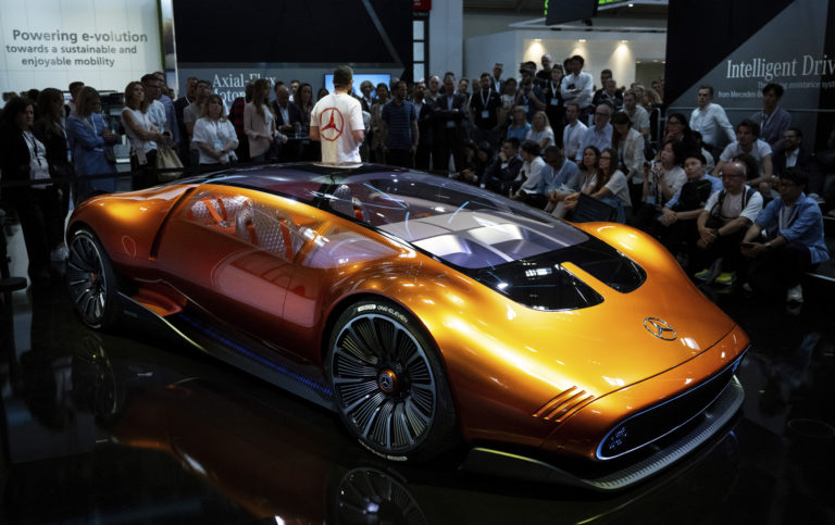 Mercedes-Benz Vision One-Eleven vystavený na autosalónu IAA v Mníchove. Foto: Sven Hoppe/dpa via AP.