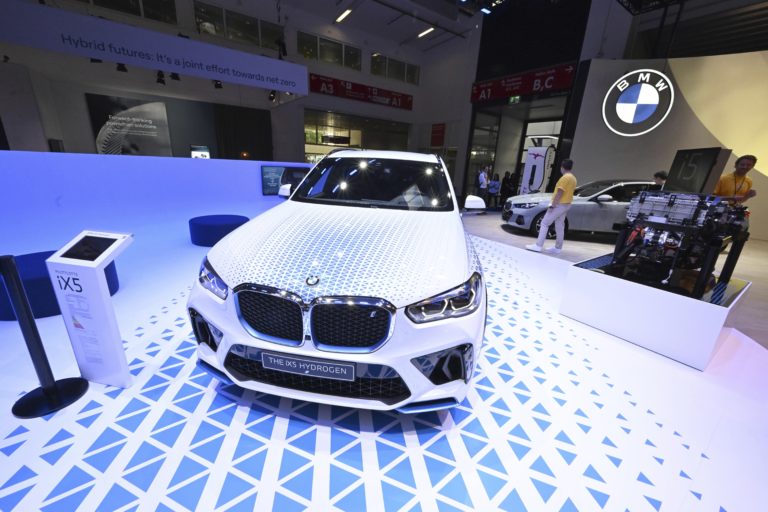 BMW iX5 Hydrogen na autosalóne IAA v nemeckom Mníchove. Medzinárodný autosalón IAA Mobility 2023 sa koná v dňoch od 5. do 10. septembra. Foto: SITA, Sven Hoppe/dpa via AP
