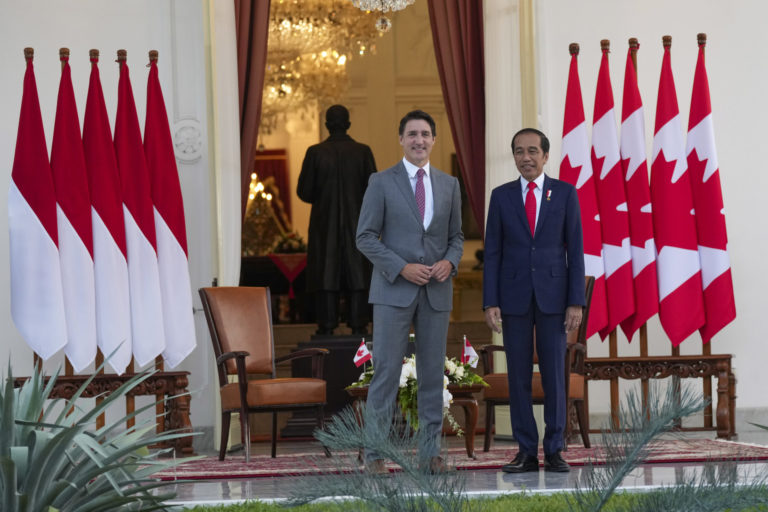 Kanadský premiér Justin Trudeau (vľavo) s indonézskym prezidentom Jokom Widodom počas ich bilaterálneho stretnutia v paláci Merdeka v Jakarte. Foto: SITA/AP