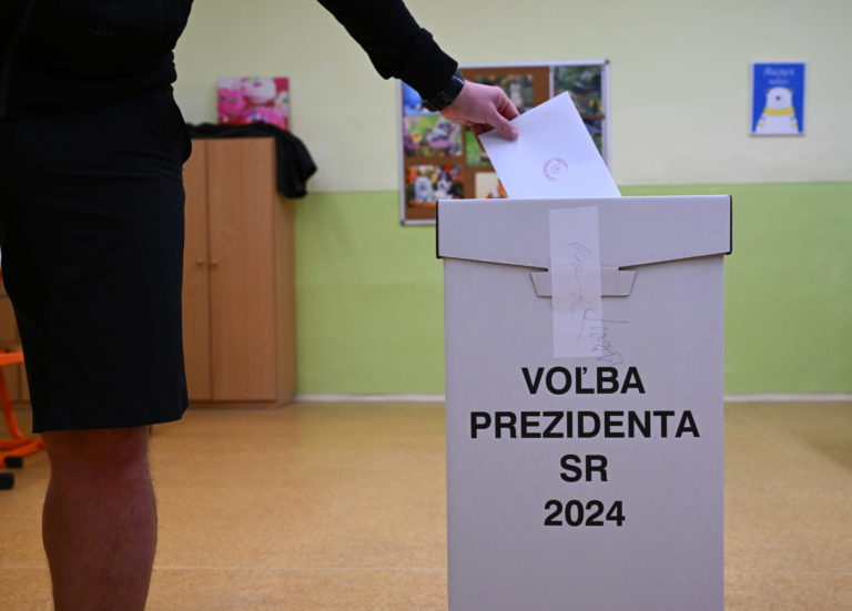Volebný akt bývalej hlavy štátu Rudolfa Schustera v druhom kole prezidentských volieb na Slovensku. Košice, 6. apríl 2024. Foto: SITA/Katarína Lörincová.