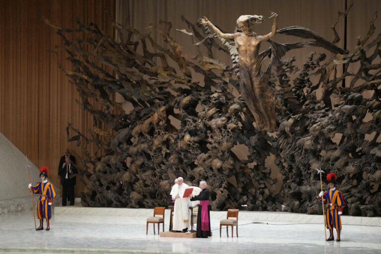 Pápež František na stretnutí s talianskym Červeným krížom. Sobota, 6. apríl, 2024. Foto: SITA/AP