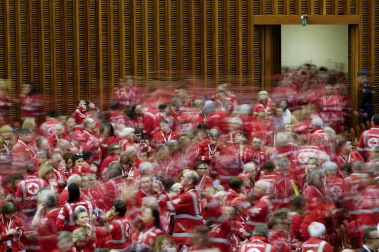 Dobrovoľníci talianskeho Červeného kríža. Sobota, 6. apríl, 2024. Foto: SITA/AP