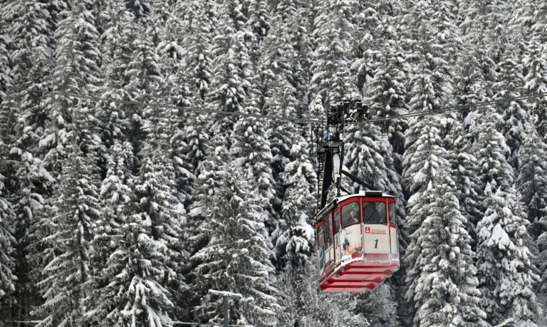 Lanovka smerujúca na horu v Oberwiesenthal. Nemecko, 6. decembra 2023. Foto: Patricia Bartos/dpa via AP