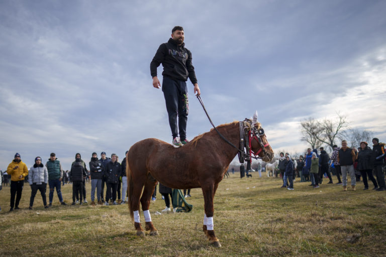 Muž na koni počas osláv Zjavenie Pána v rumunskej dedinke Pietrosani. Foto: SITA/AP.