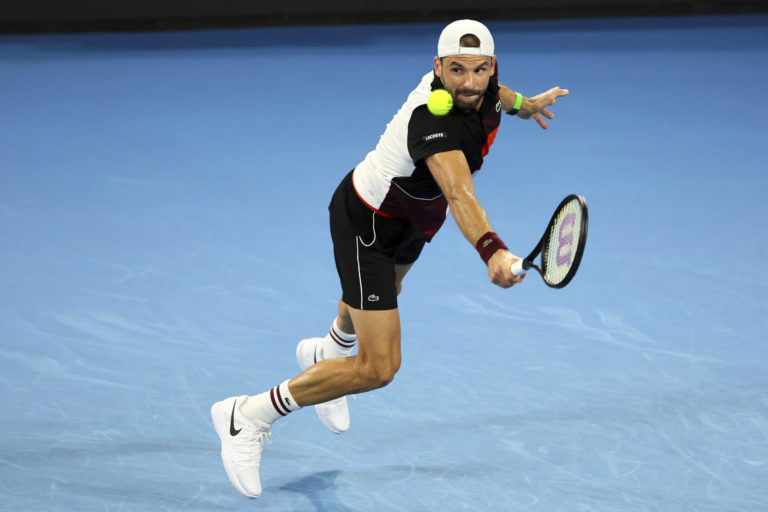 Bulharský tenista Grigor Dimitrov počas semifinálového zápasu na turnaji v Brisbane proti Jordanovi Thompsonovi. Foto: SITA/AP.