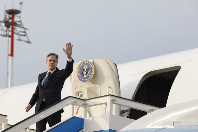 Americký minister zahraničných vecí Antony Blinken nastupuje v Istanbule do lietadla a smeroval na Krétu. Foto: Evelyn Hockstein/Pool Photo via AP.