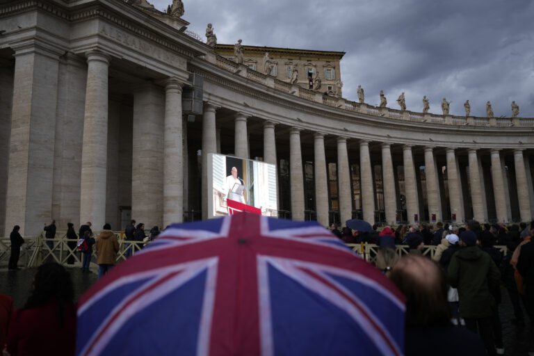 Ľudia sa zhromažďujú na Námestí svätého Petra, keď pápež František udeľuje svoje požehnanie. Foto: SITA/AP.