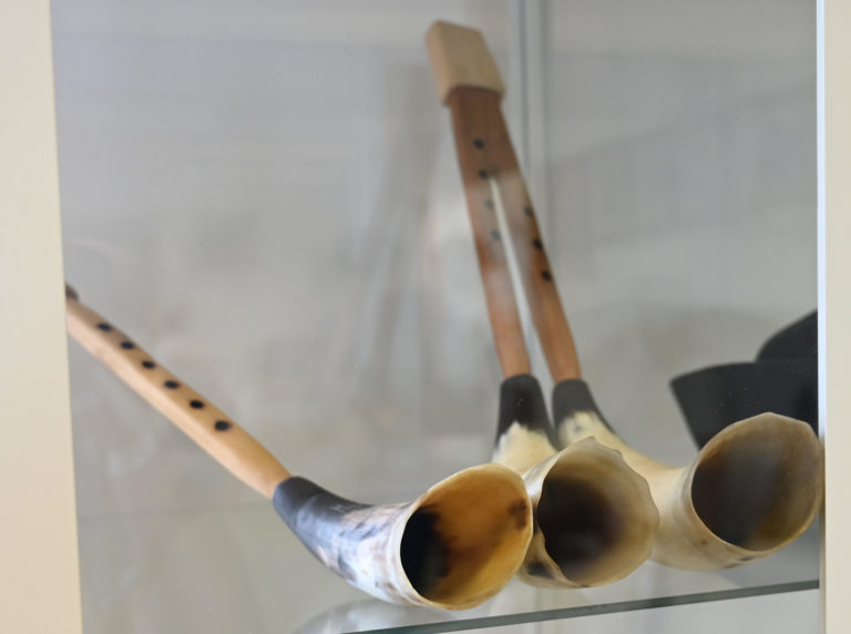 Výstava venovaná Alexandrovi Gernátovi z Krivian, ktorý bol so svojou vlastnoručne vyrobenou gajdicou a hlavne dvojgajdicou neodmysliteľnou súčasťou miestnych vystúpení a kultúrnych podujatí v širokom okolí. Východná, 6. júl 2024. Foto: SITA/Viktor Zamborský