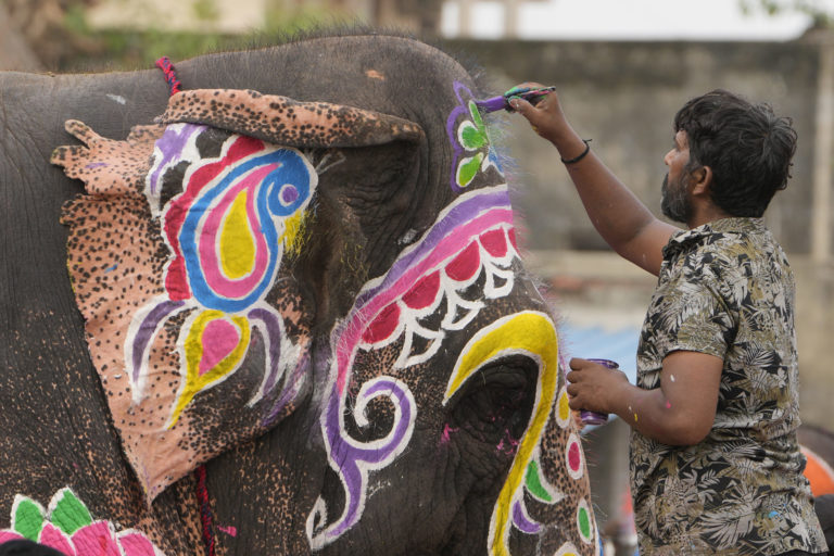 Maľovanie na slonovi v predvečer každoročnej Rath Yatry. Foto: SITA/AP