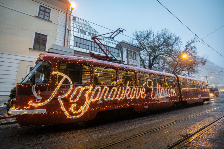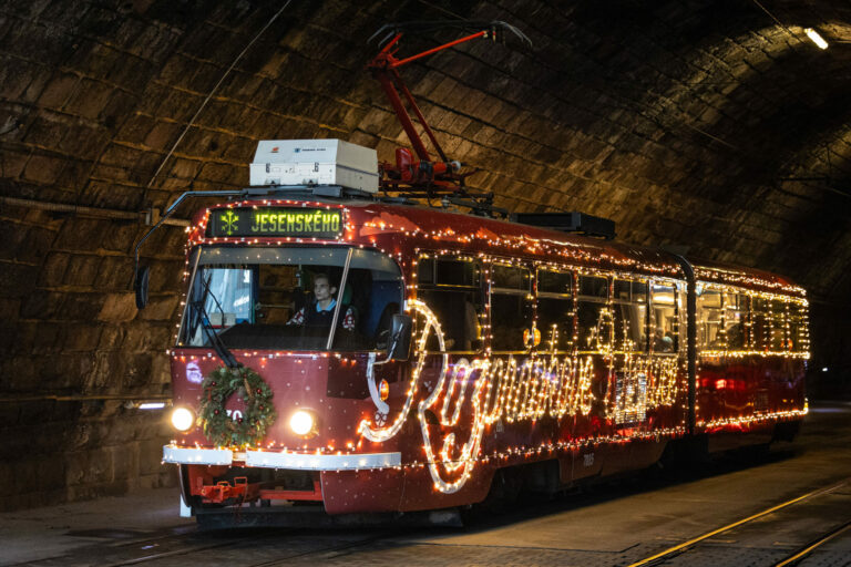 Ozdoby vo vianočnej električke v uliciach hlavného mesta. Bratislava, 7. december 2024. Foto: SITA/Jana Birošová