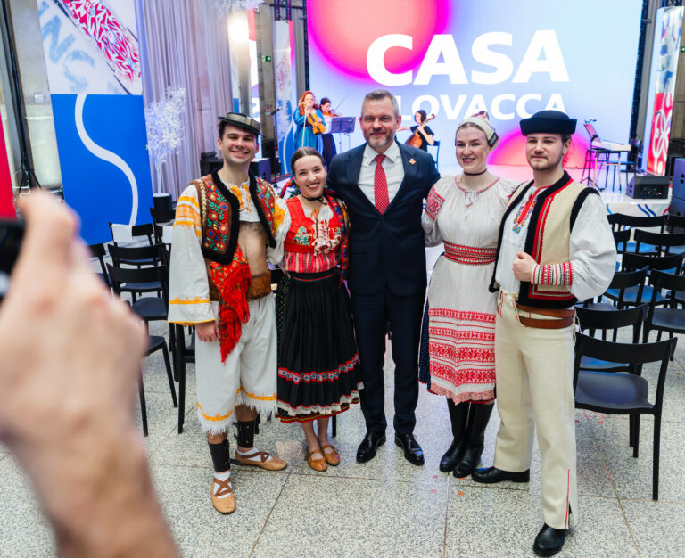 Prezident SR Peter Pellegrini (uprostred) počas slávnostného otvorenia Slovenského olympijského domu v Miláne v rámci zimných olympijských hier 2026 v Taliansku. Miláno, Talioansko, 7. február 2026. Foto: SITA/Kancelária prezidenta SR