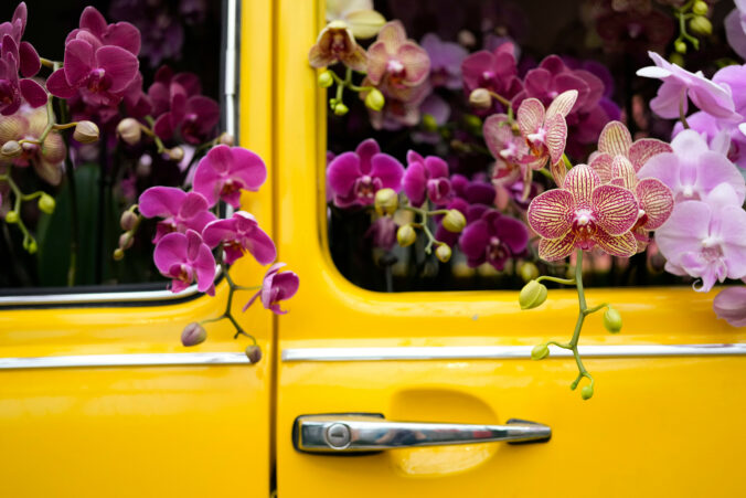 Orchidey zdobia Volkswagen Beetle počas dokončovacích prác na 12. ročníku výstavy orchideí v Chicago Botanic Garden v Glencoe. Illinois, 6. februára 2026. Foto: AP Photo/Erin Hooley