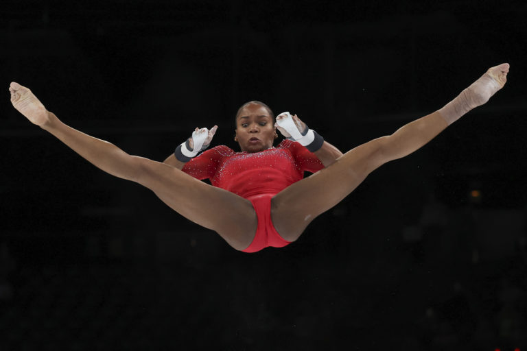 Američanka Shilese Jonesová na Majstrovstvách sveta v športovej gymnastike v Antverpách. Foto: SITA/AP.