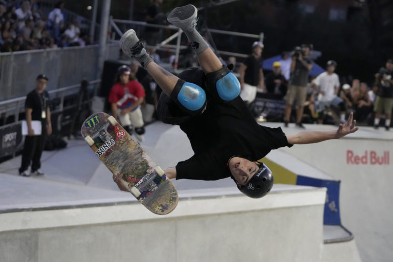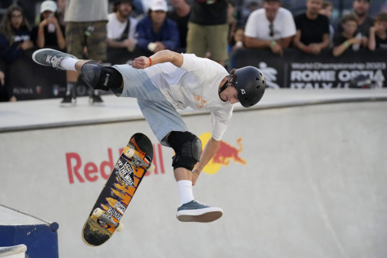 Tate Carew z USA na Majstrovstvách sveta v skejtbordingu v Ostia Skateparku pri Ríme. Foto: SITA/AP.