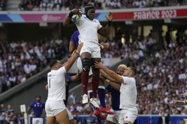 Reprezentanti Anglicka počas zápasu proti Samoe na MS v rugby vo Francúzsku. Foto: SITA/AP.