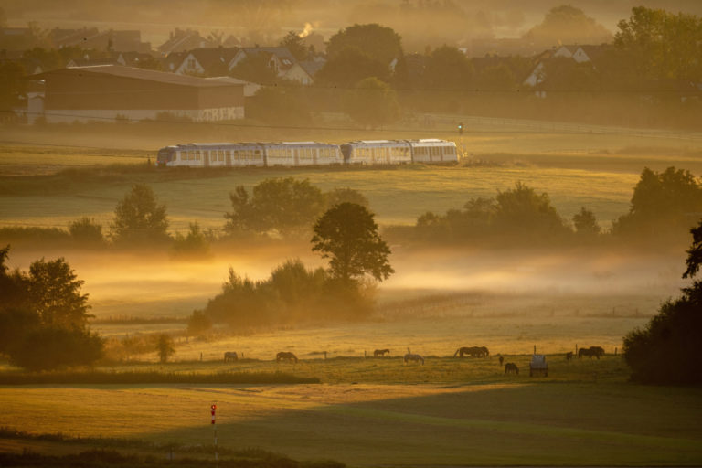 Vlak na vodíkový pohon sa blíži k stanici Wehrheim pri Frankfurte nad Mohanom. Foto: SITA/AP.
