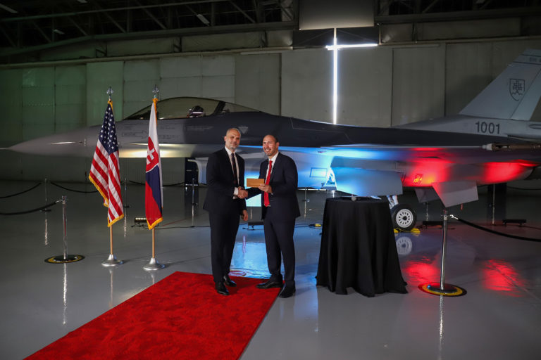 Prvá stíhačka F-16 pre Slovensko je vyrobená a produkcia ďalších pokračuje podľa plánu. Minister obrany Martin Sklenár v stredu 6. septembra navštívil fabriku spoločnosti Lockheed Martin v meste Greenville v Južnej Karolíne. Zdroj: SITA/Ministerstvo obrany SR.