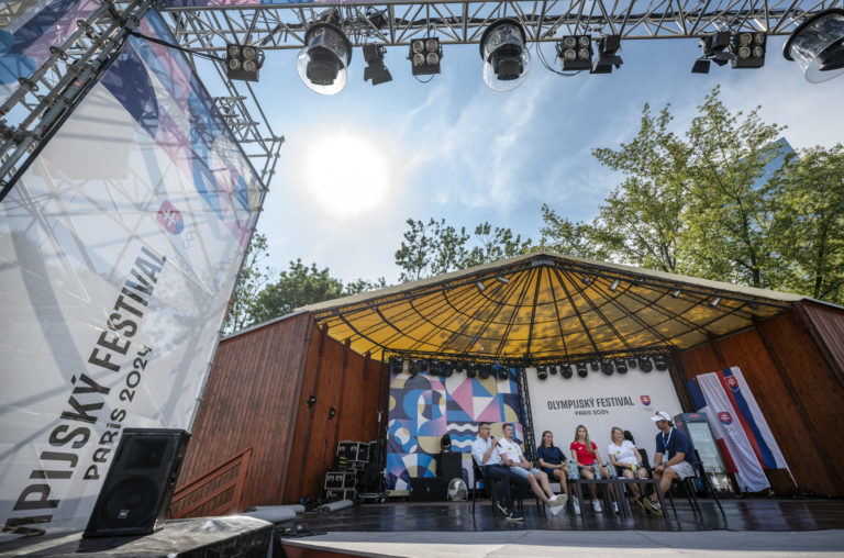 Šprintér Ján Volko počas privítania Gabriely Gajanovej na Olympijskom festivale na Kuchajde po jej návrate z XXXIII. letných olympijských hier 2024 v Paríži. Bratislava, 8. august 2024. Foto: SITA/Milan Illík