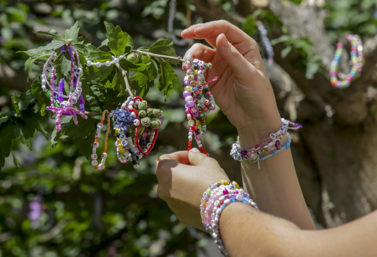 Fanúšikovia po zrušení koncertu Taylor Swift vešajú náramky na stromy vo Viedni. Štvrtok, 8. august, 2024. Foto: SITA/AP